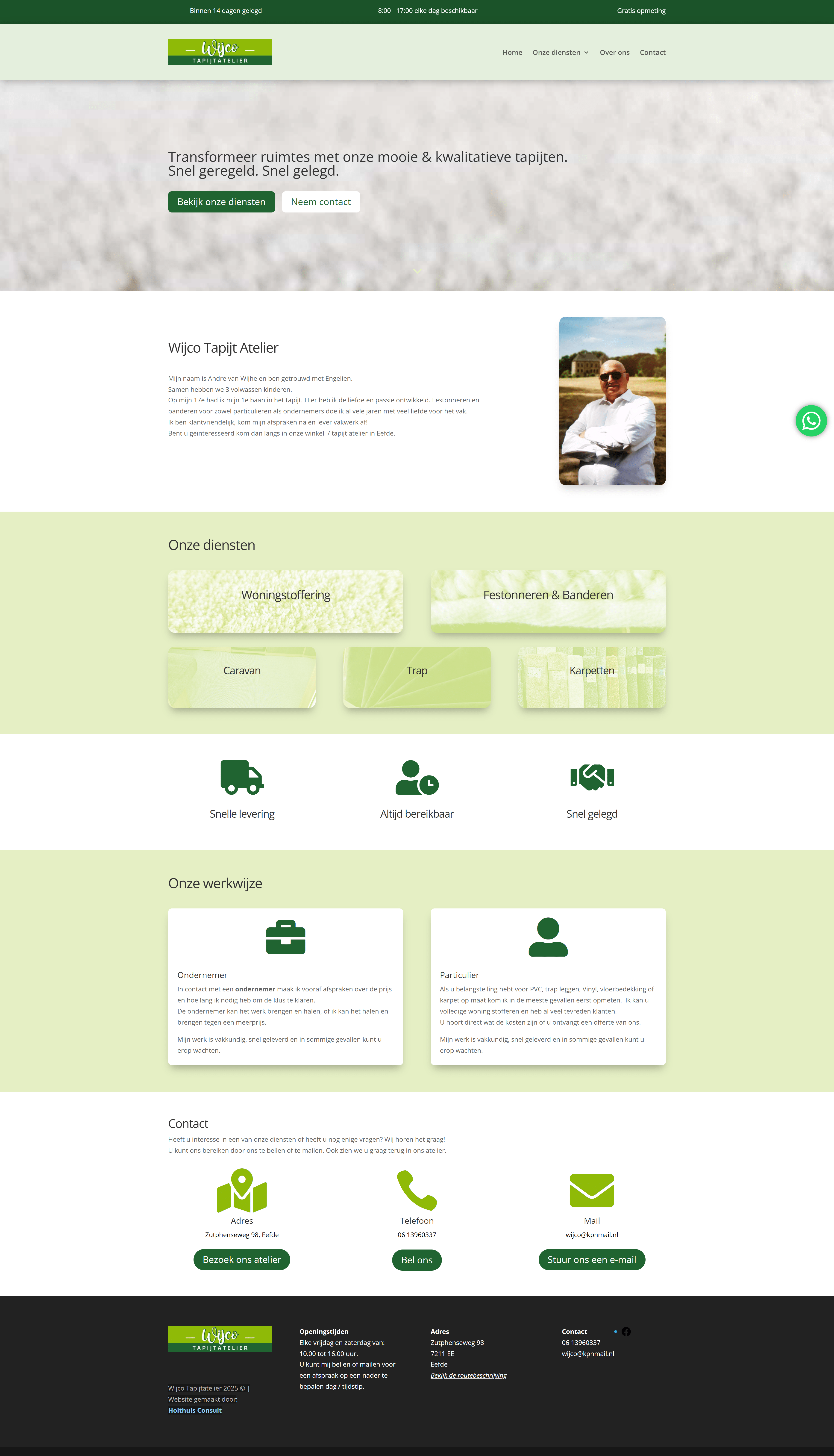 Om dit aan te pakken hebben wij in samenwerking een mooie website opgezet waarin ze onder ander hun diensten, kwaliteiten en verhaal goed kunnen overbrengen bij bezoekers. Ook hebben we ervoor gezorgd dat ze online beter vindbaar worden via verschillende platformen. Met dank aan Holthuis Consult is hun naamsbekendheid verbeterd, hebben ze een groter bereik en brengen ze meer mensen naar de fysieke winkel.